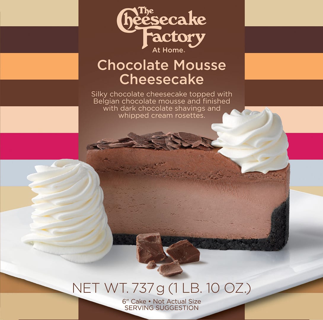 Rich chocolate cheesecake, decadent chocolate mousse and dark chocolate shavings on a chocolate crust. This cheesecake is uncut and comes frozen in ‘The Cheesecake Factory, At Home” box. For $25.00