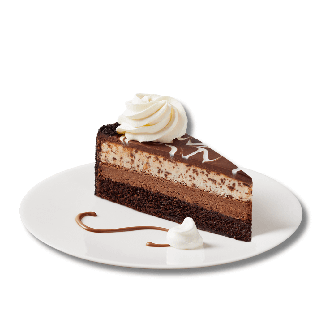 Layers of moist chocolate fudge cake, rich chocolate cheesecake, and vanilla mousse baked on a chocolate crumb, and topped with dark chocolate ganache. For $75.00.