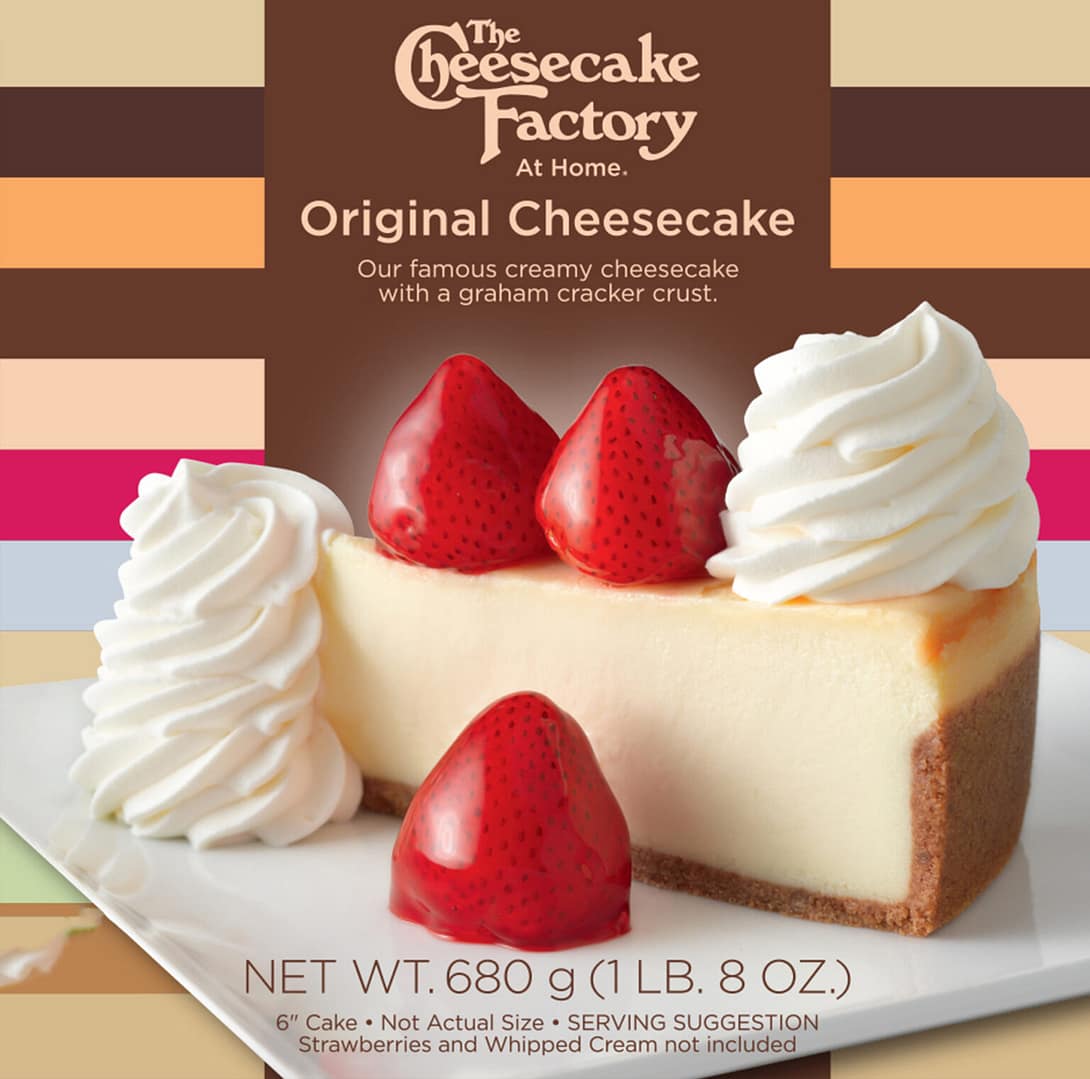 Our legendary original recipe of creamy California cheesecake, with a graham cracker crust. This cheesecake is uncut and comes frozen in ‘The Cheesecake Factory, At Home” box packaging. For $25.00